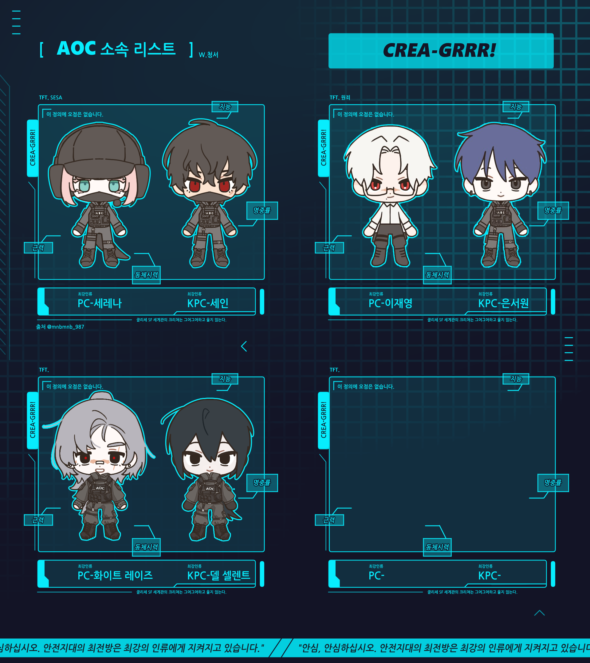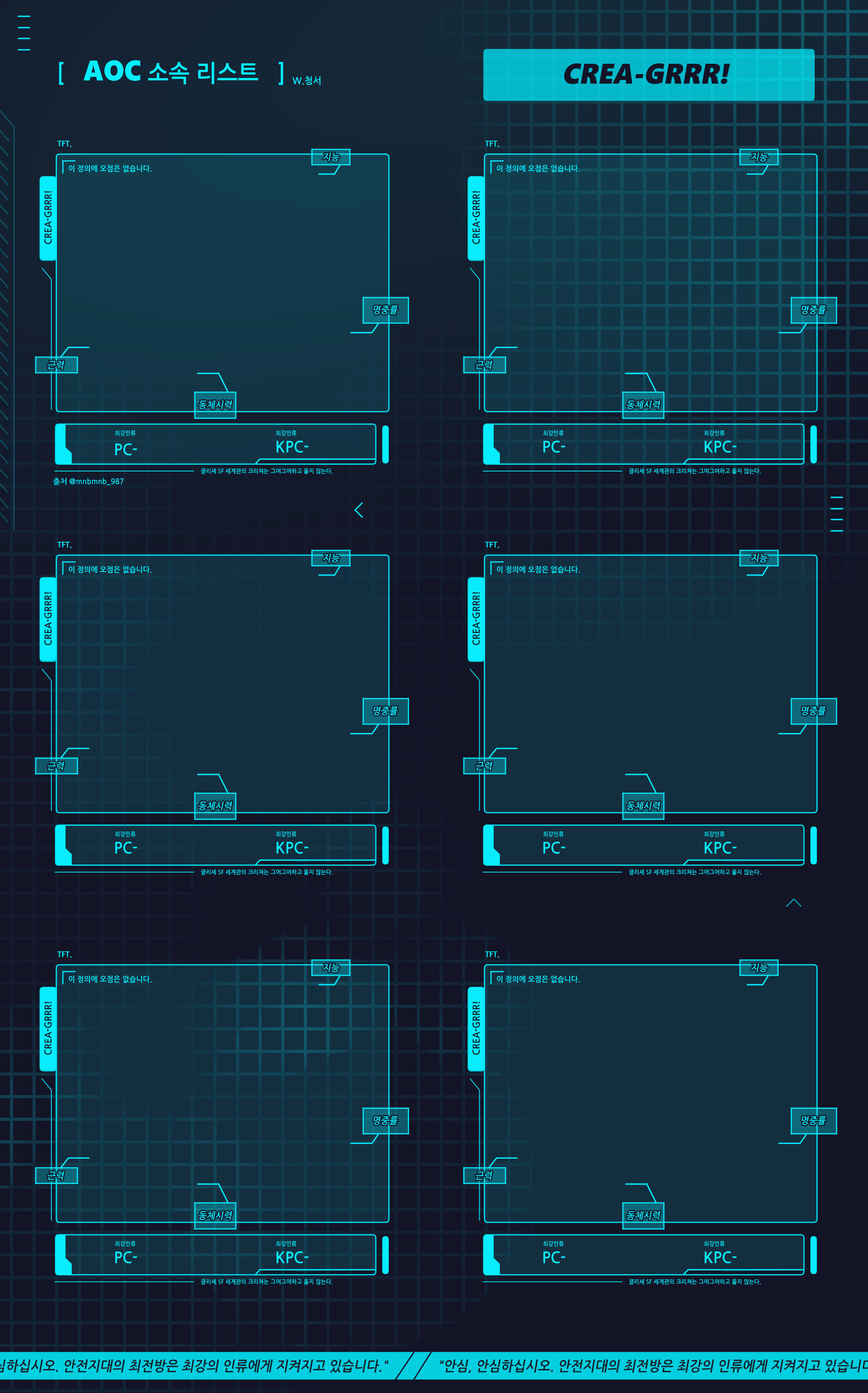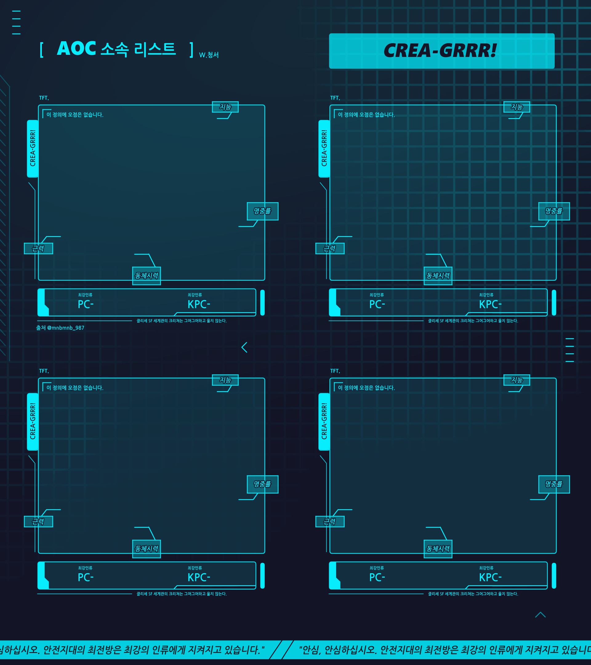 다른 크그 페어들과 함께 AOC소속 최강의 인류 놀이를 하기 위해 만든 틀