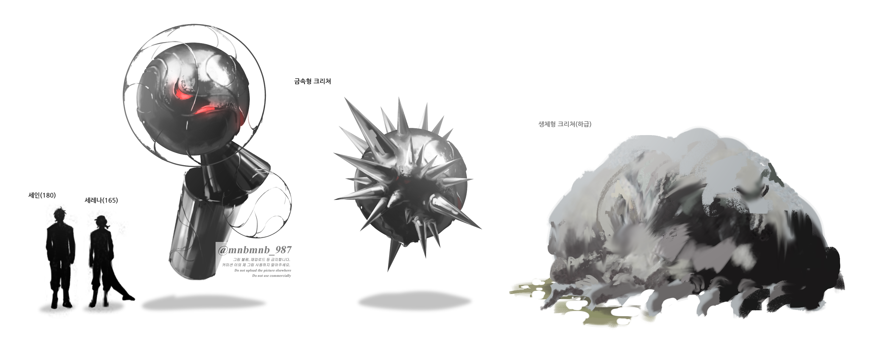 제가 생각한 크리쳐 모습입니다 플레이어 입장에서 보았던 묘사들을 넣었기에 gm정보와 다를수있습니다.